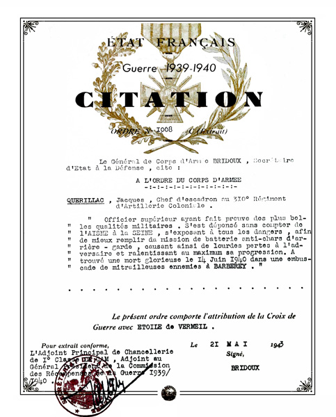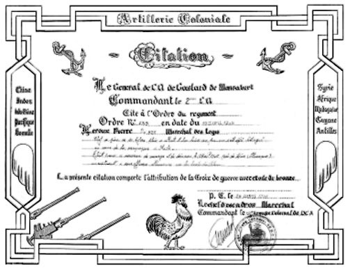 Original diplôme de citation comportant l'attribution de la Croix de guerre avec étoile de bronze