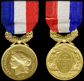 Médaille de Vermeil décernée en 1885 par le ministère de l'Intérieur