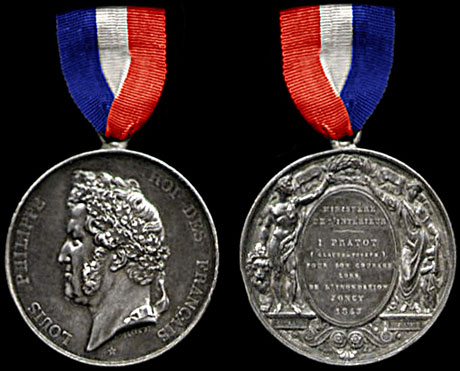 Médaille d'Argent décernée en 1852 par le ministère de l'Intérieur