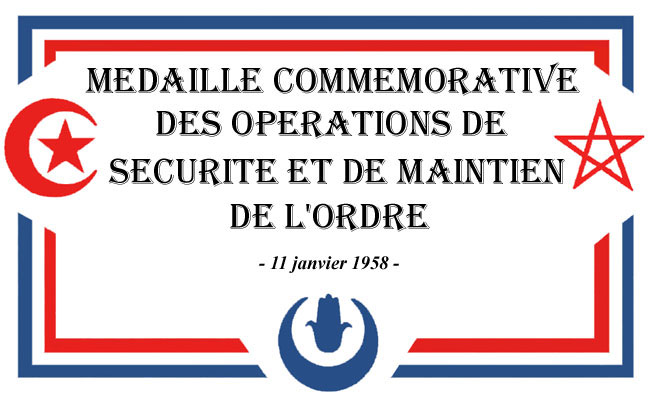 En vue de commémorer la participation à ces opérations, fut créée initialement par le décret n° 56-1032 du 12 octobre 1956, une médaille commémorative des opérations de sécurité et de maintien de l'ordre en Afrique du Nord, au modèle dérivé de la défunte et éphémère médaille de la Valeur militaire. Cette appellation sera légèrement modifiée par le décret n° 58-24, du 11 janvier 1958 ; texte créant la médaille commémorative des opérations de sécurité et de maintien de l’ordre. Au final, cette décoration est plus communément appelée dans le milieu combattant, médaille commémorative A.F.N. ( Afrique du Nord ) et son dessin est proche de la Médaille coloniale.