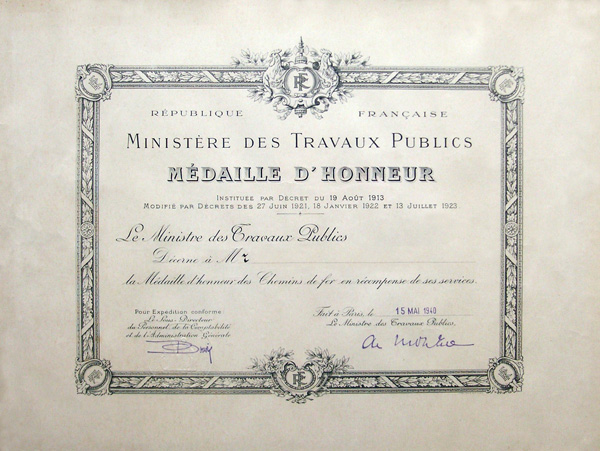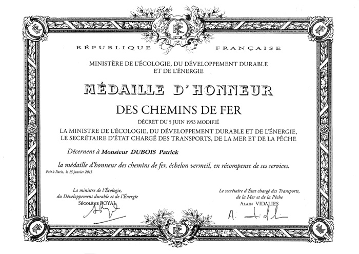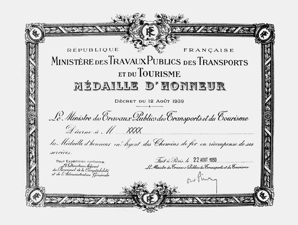 MÉDAILLE D’HONNEURDES CHEMINS DE FER