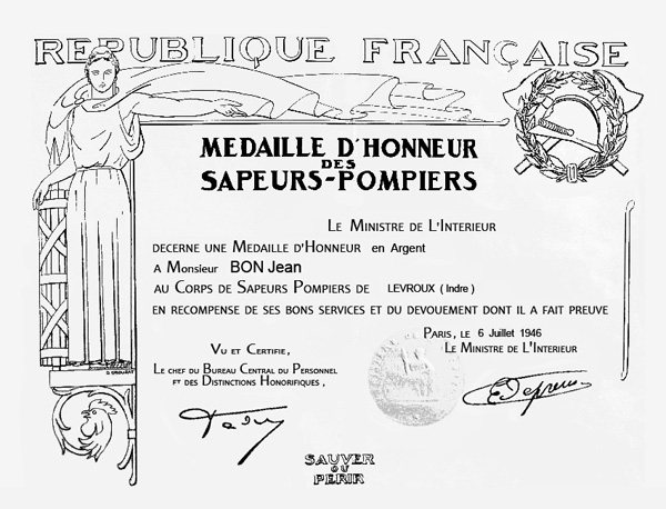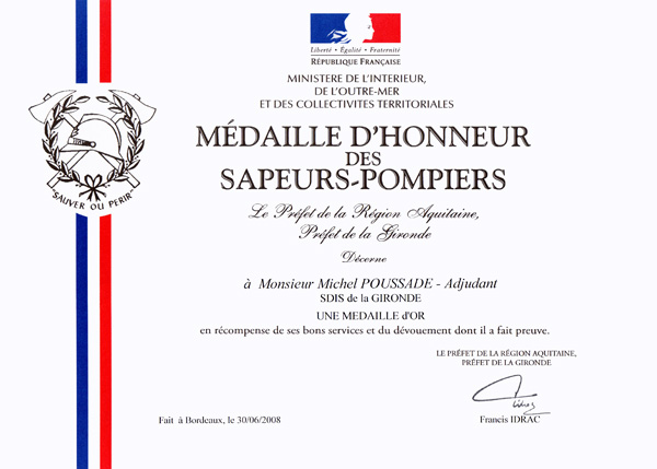MÉDAILLE D'HONNEUR DES SAPEURS-POMPIERS