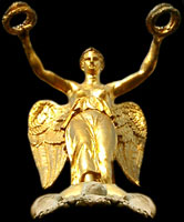 rameau d’olivier et en main gauche une couronne de laurier.