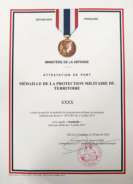 MÉDAILLE DE LA PROTECTION MILITAIRE