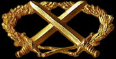 – le second était une plaque ovale laurée, de 67 mm de hauteur et 53 mm de largeur, portant au centre deux épées croisées, la pointe en l’air et réunies par un nœud de ruban, le tout en laiton non doré et fixé, sur un fond de drap de couleur rouge.